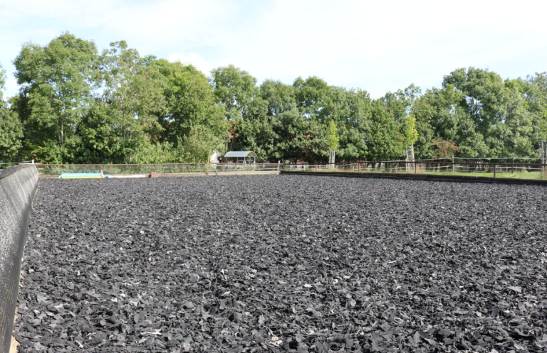- Reitplatz (20 m x 40 m) mit Tretschicht aus Teppichschnipseln