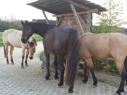 - Gesunde Fütterung mit natürlichen Futtermitteln wie Heu, Stroh, Gras-, Luzerne- und Esparsette-Cobs und Mineralfutter