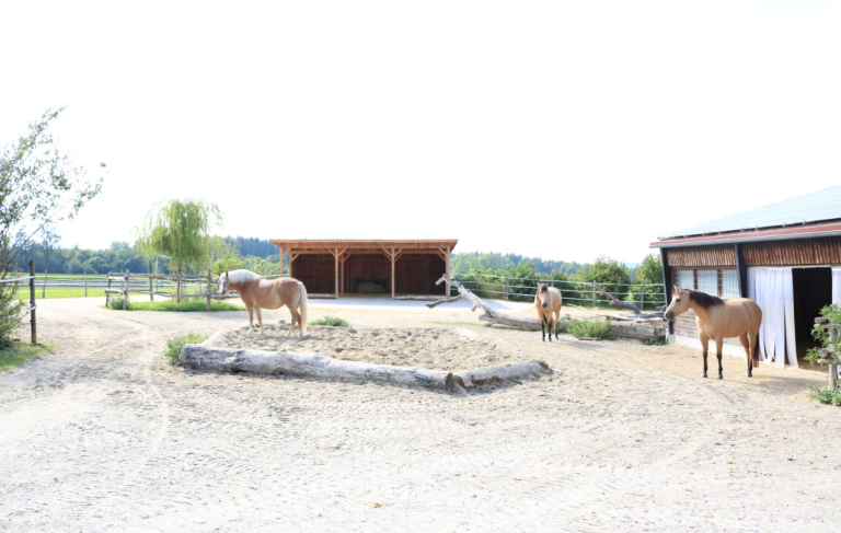 - 1.300 m² mit Kies, Sand und Schotter befestigter Paddock